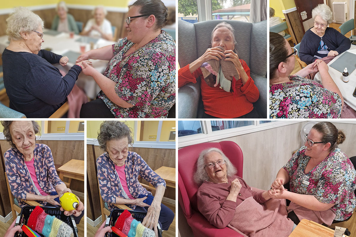 Many of our residents love some one-to-one time with our Activities Team members to enjoy a relaxing hand massage or some time exploring our sensory boxes.